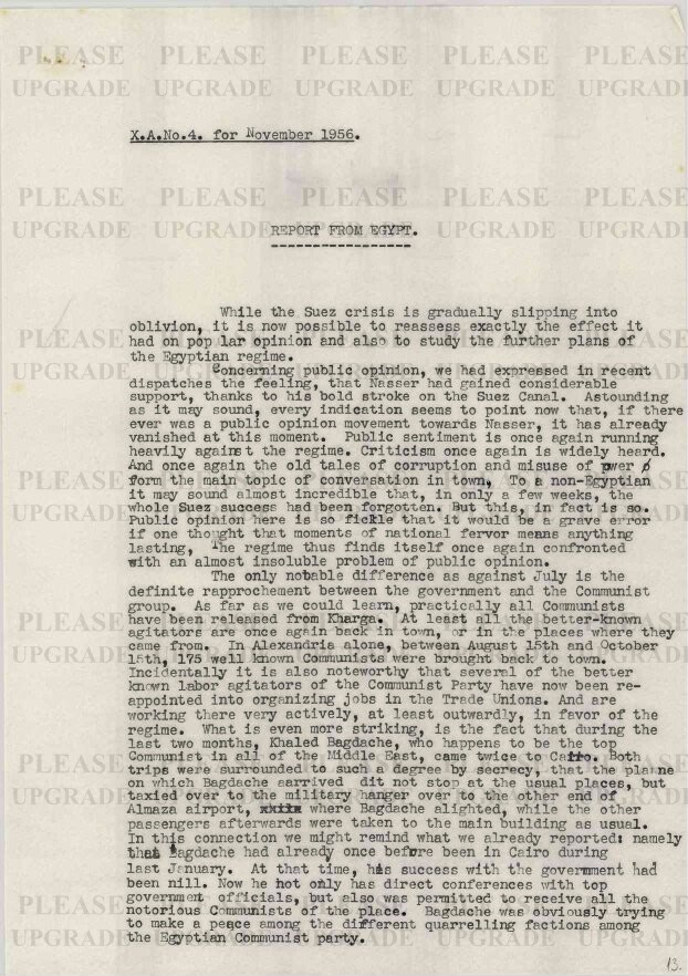 Preview Report from Egypt Preview Show Metadata Show Permalink Publisher Habsburg Ottó Alapítvány Date 1956-11 Total Pages 3 Collection (HOAL I-7-a) Külpolitikai helyzetjelentések / Dispatches