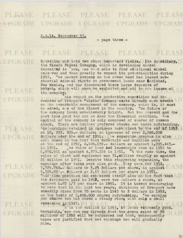 Preview The Freeport Sulphur Company Preview Show Metadata Show Permalink Publisher Habsburg Ottó Alapítvány Date 1953-09 Total Pages 3 Collection (HOAL I-7-a) Külpolitikai helyzetjelentések / Dispatches