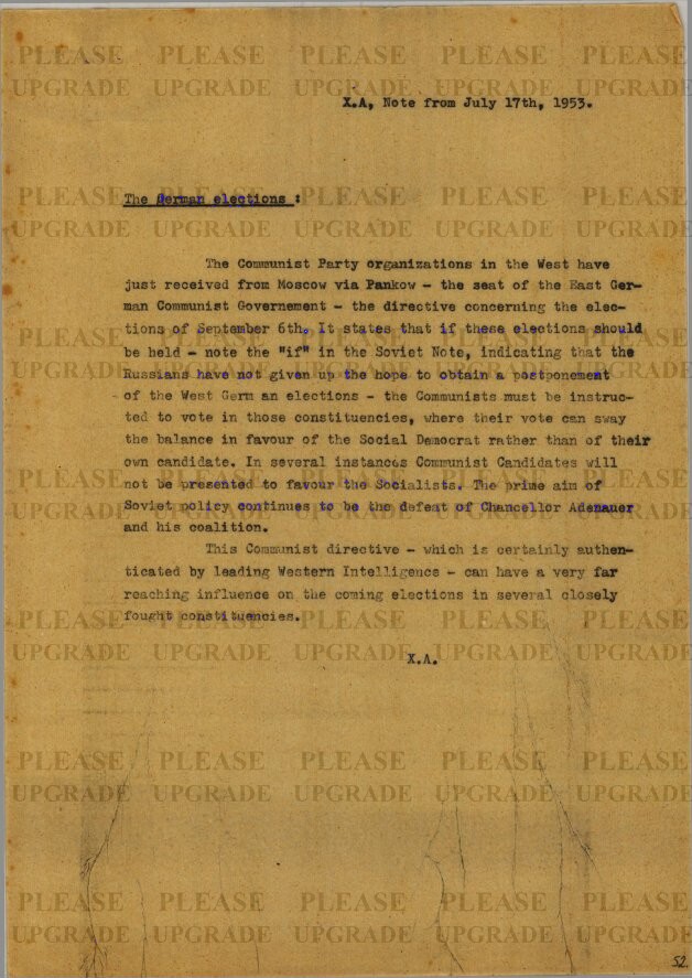 Preview The German Elections Preview Show Metadata Show Permalink Publisher Habsburg Ottó Alapítvány Date 1953.07.17 Total Pages 1 Collection (HOAL I-7-a) Külpolitikai helyzetjelentések / Dispatches