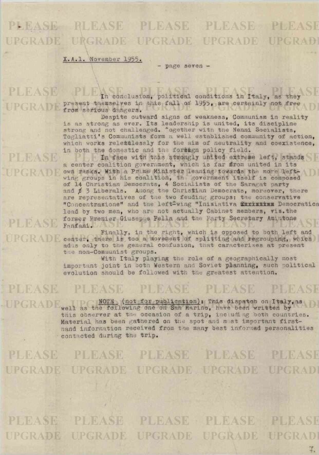 Preview Italy in the Fall of 1955 Preview Show Metadata Show Permalink Publisher Habsburg Ottó Alapítvány Date 1955-11 Total Pages 7 Collection (HOAL I-7-a) Külpolitikai helyzetjelentések / Dispatches