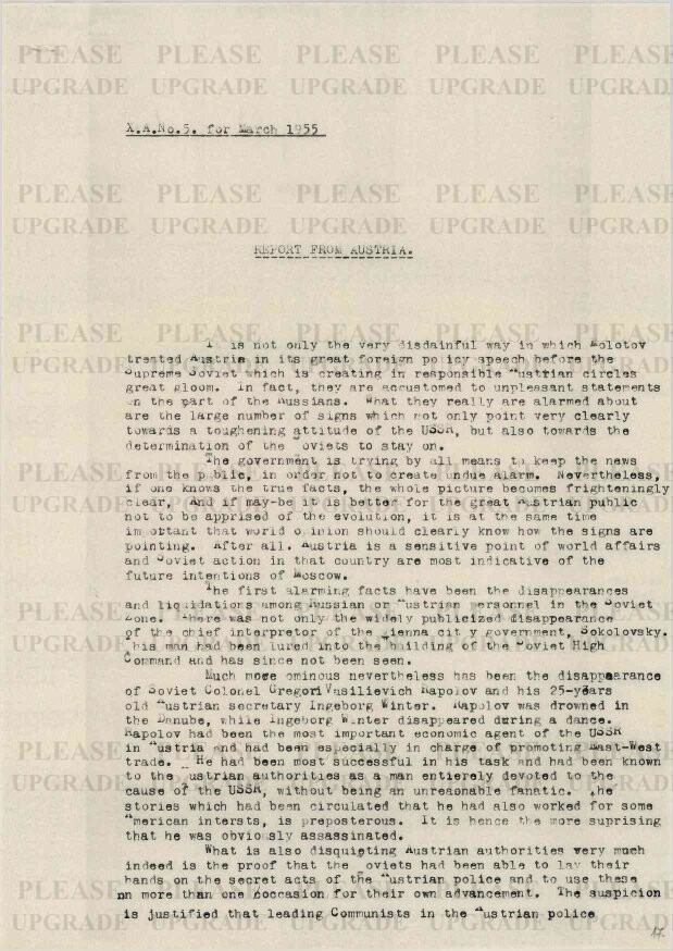Preview Report from Austria Preview Show Metadata Show Permalink Publisher Habsburg Ottó Alapítvány Date 1955-03 Total Pages 3 Collection (HOAL I-7-a) Külpolitikai helyzetjelentések / Dispatches