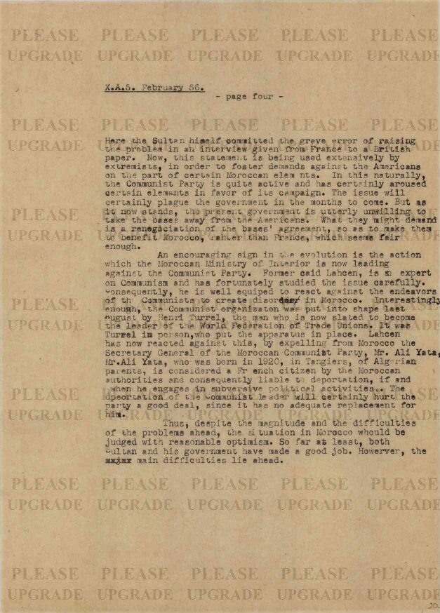 Preview The Situation in Morocco Preview Show Metadata Show Permalink Publisher Habsburg Ottó Alapítvány Date 1956-02 Total Pages 4 Collection (HOAL I-7-a) Külpolitikai helyzetjelentések / Dispatches