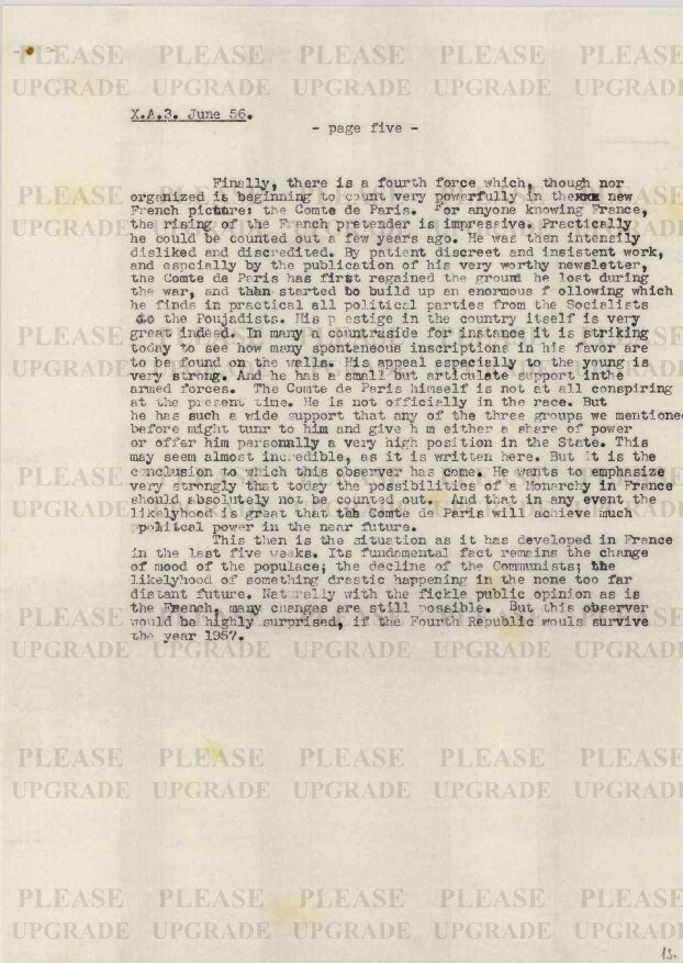 Preview Report from Paris Preview Show Metadata Show Permalink Publisher Habsburg Ottó Alapítvány Date 1956-06 Total Pages 5 Collection (HOAL I-7-a) Külpolitikai helyzetjelentések / Dispatches