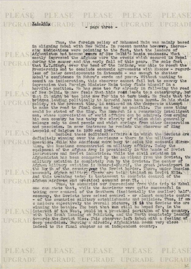 Preview Report from Kabul Preview Show Metadata Show Permalink Publisher Habsburg Ottó Alapítvány Date 1957-11 Total Pages 3 Collection (HOAL I-7-a) Külpolitikai helyzetjelentések / Dispatches