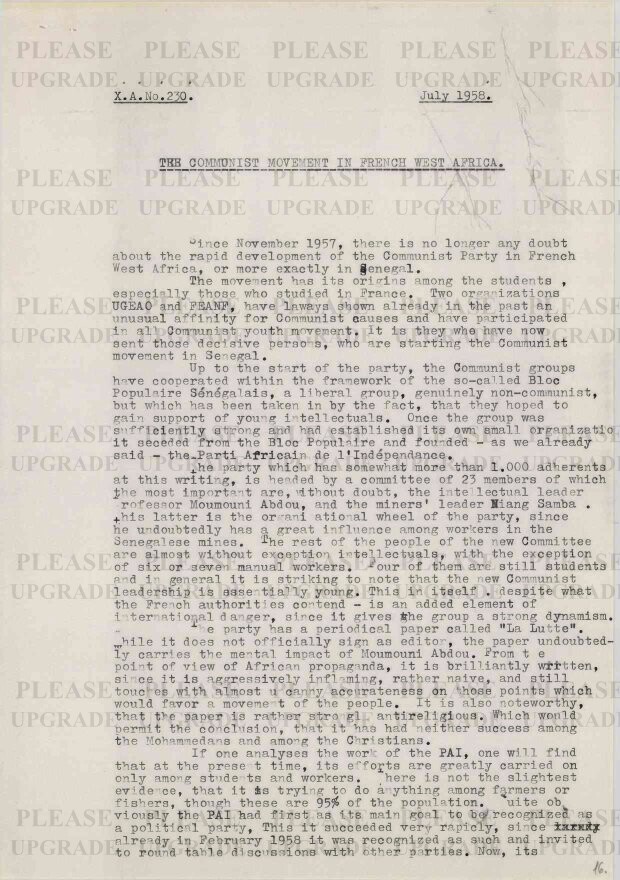 Előnézet The Communist Movement in French West Africa Előnézet Metaadatok mutatása Permalink mutatása Kiadó Habsburg Ottó Alapítvány Dátum 1958-07 Összes oldal 2 Gyűjtemény (HOAL I-7-a) Külpolitikai helyzetjelentések / Dispatches
