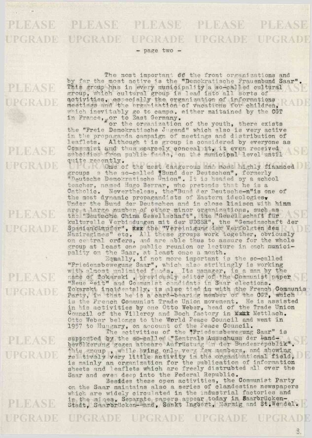Report on the Saar